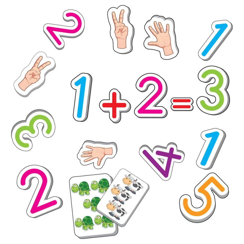 Ajuta-i pe micii exploratori sa invete mai usor matematica, prin acest set de numere magnetice. Aceste numere se pot plasa cu usurinta pe frigider, sau pe o tabla magnetica, pentru ca cei mici sa poata experimenta matematica prin joc.