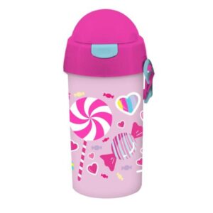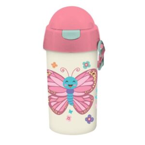 Sticlă de apă Must Plastic 500ml pentru fetiță cu paie 9×19 în 4 modele (Tânăra Doamnă și Cerbul, Elefantul drăguț, Acadele, Fluture), accesoriu ideal pentru activități preșcolare și zilnice.